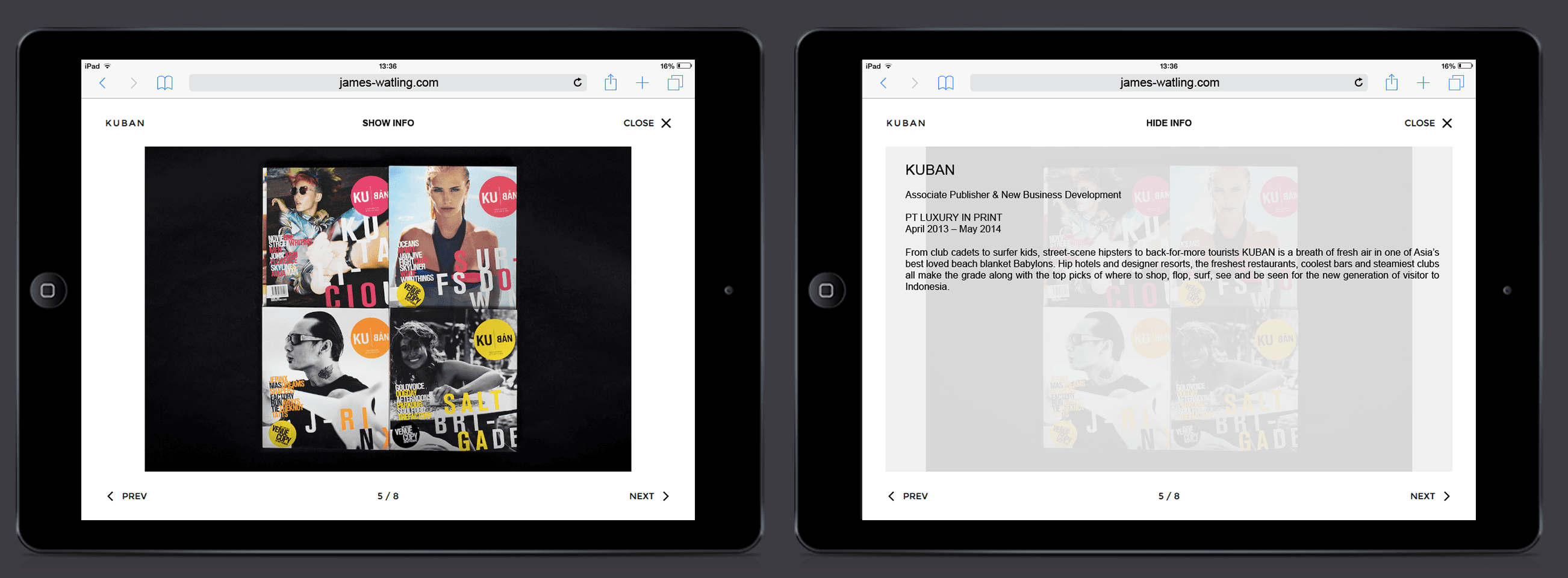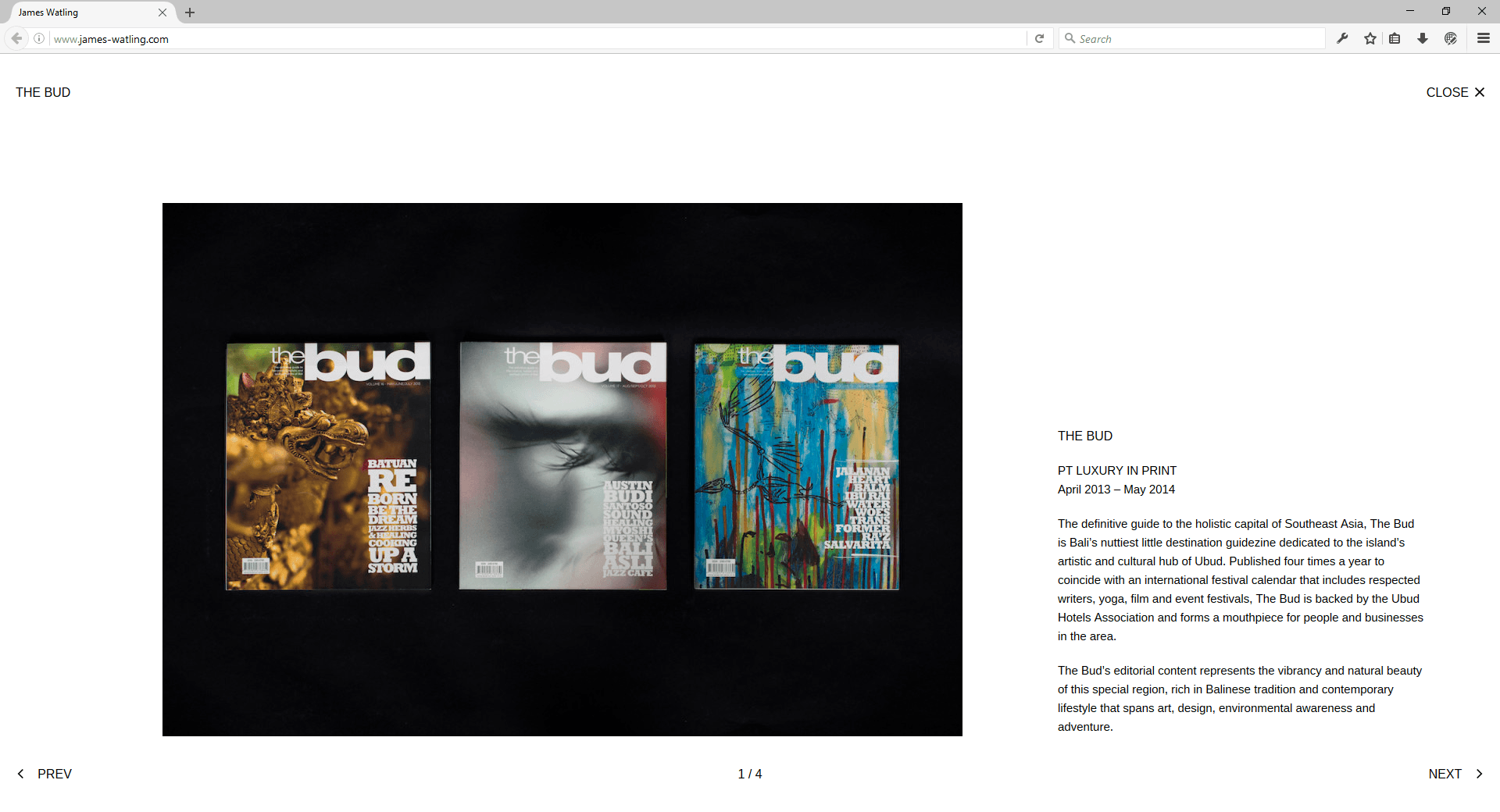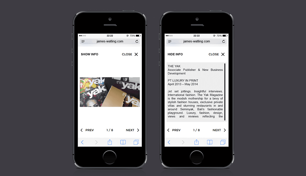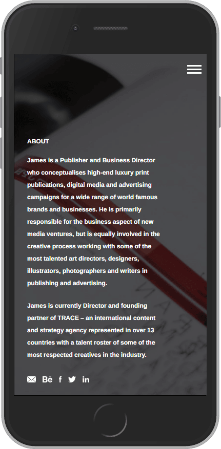 This portfolio was created for publisher James Watling. Having selected an existing Wordpress theme, the client needed somebody to set out content and make layout modifications to match his vision.