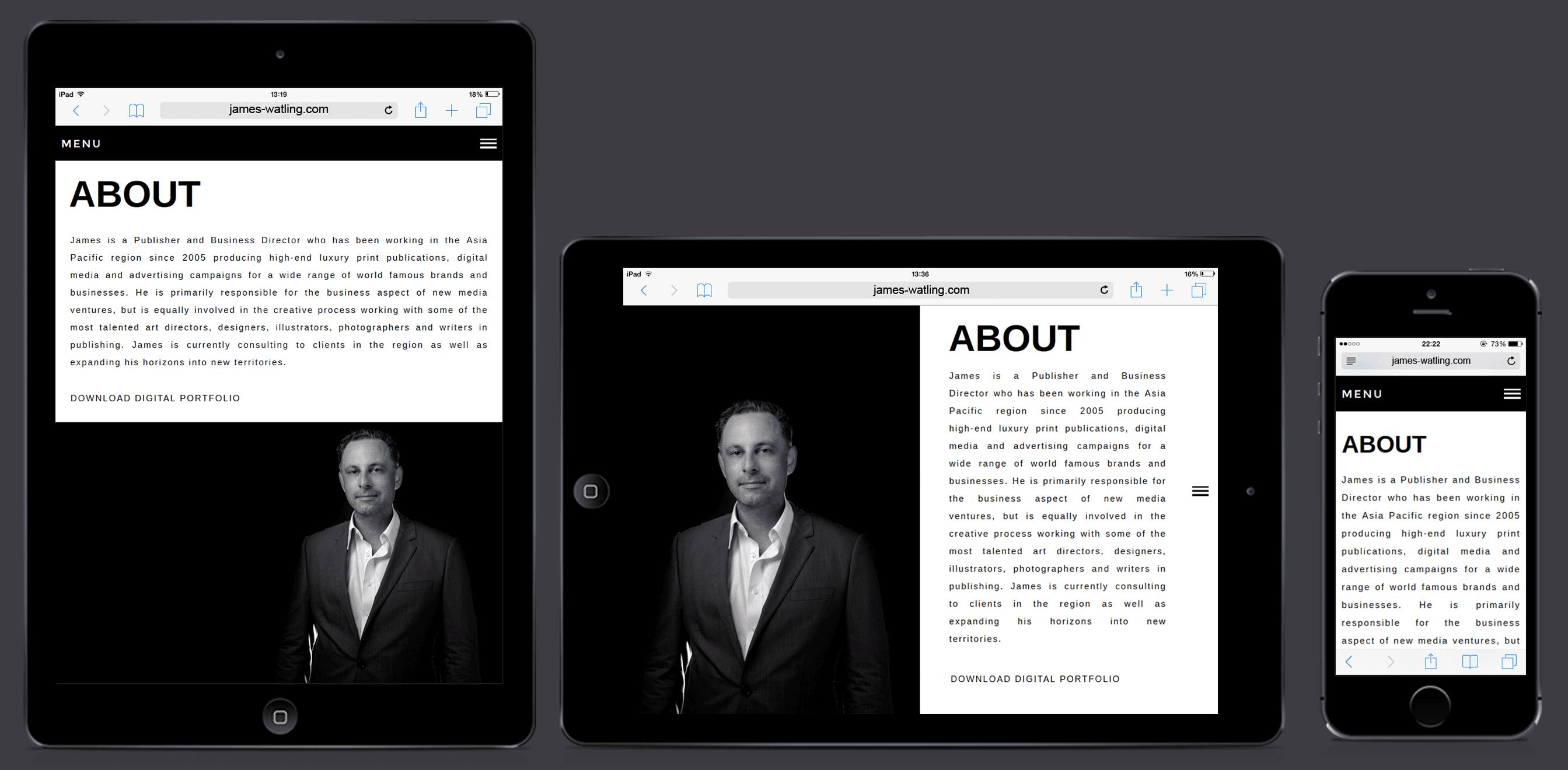 I designed the portfolio to be fully responsive, allowing complete functionality across desktop, tablet and mobile devices.